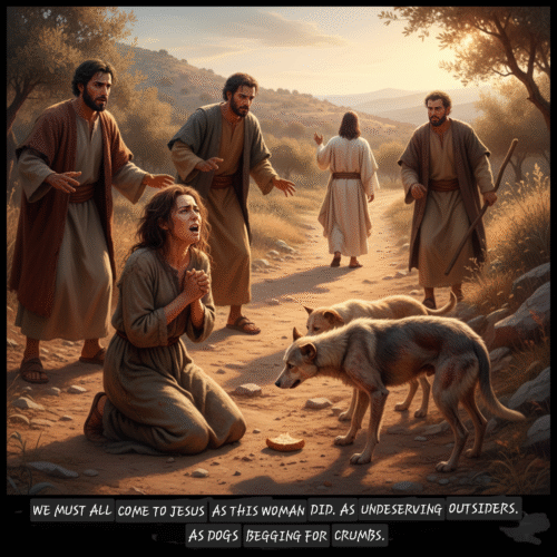 The call to us is the same: Come as undeserving outsiders. Come as dogs begging for crumbs. Confess you have no claim on God’s mercy, then boldly ask for it anyway—because of who Christ is, not who you are.